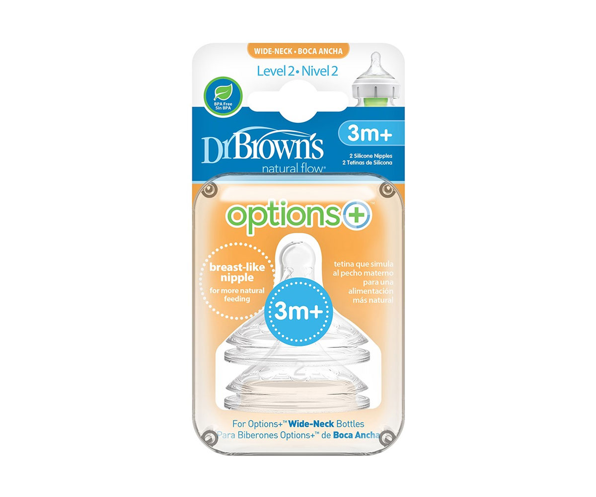 Силиконов биберон Dr. Brown's WN2201-INTL, етап 2, Options+, 2 броя