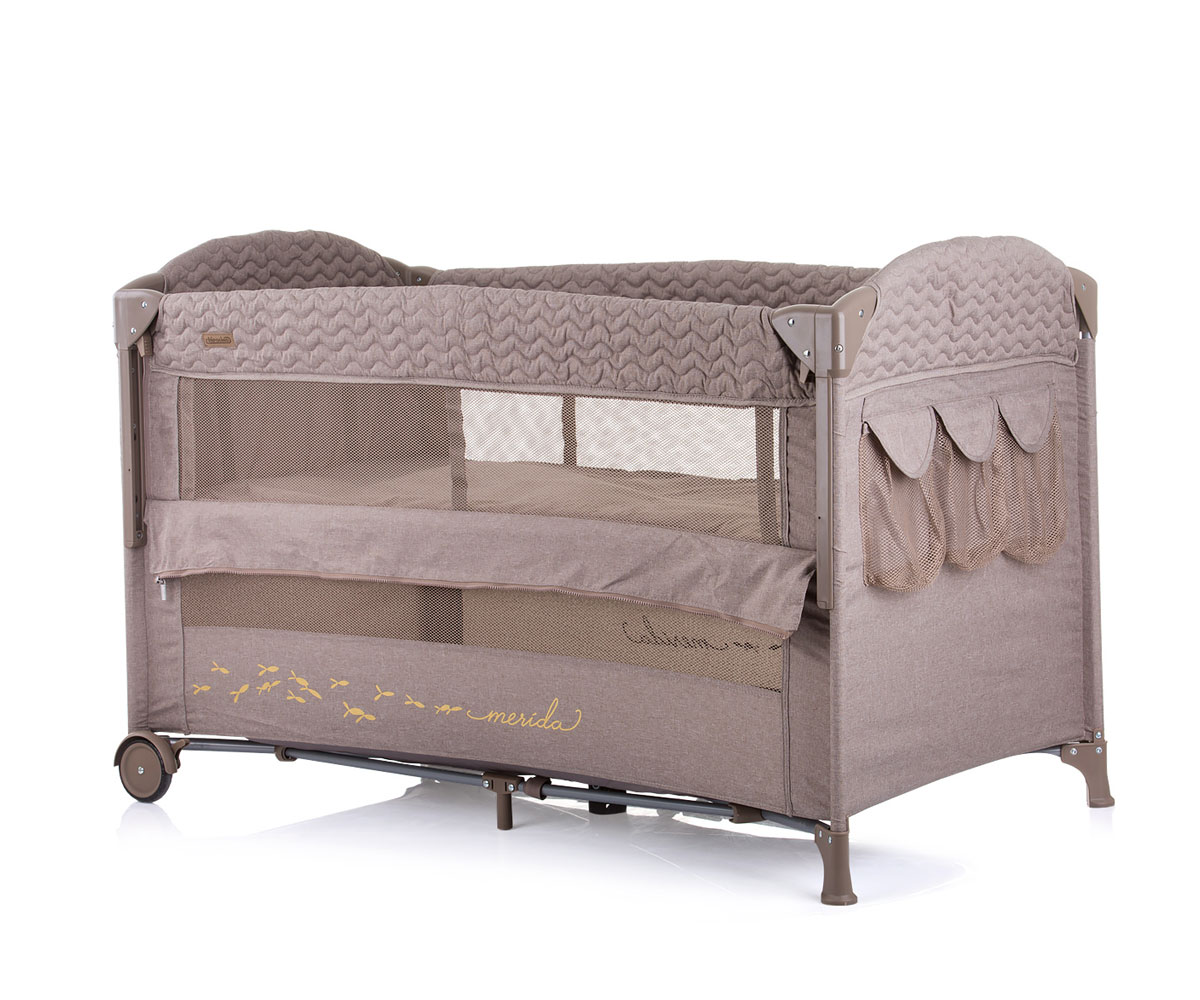 Бебешка кошара за спане и игра с падаща страна Chipolino Мерида, хумус лен