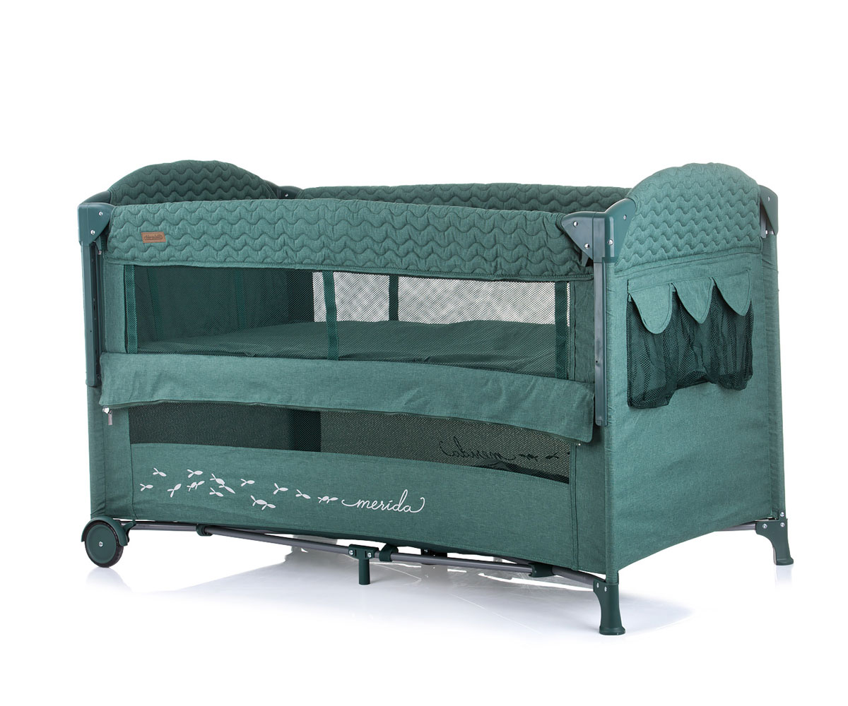 Бебешка кошара за спане и игра с падаща страна Chipolino Мерида, авокадо лен