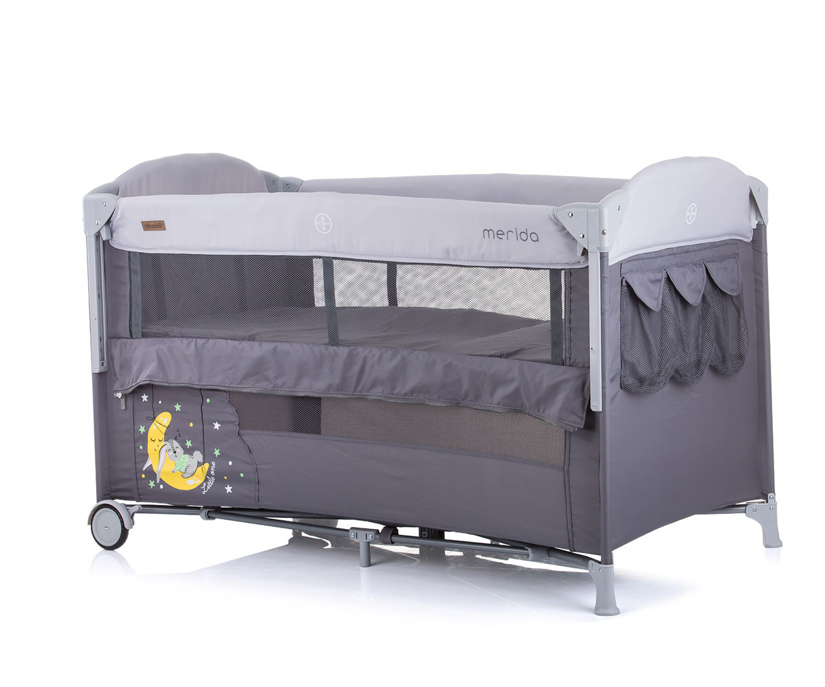 Бебешка кошара за спане и игра с падаща страна Chipolino Мерида, антрацит лен