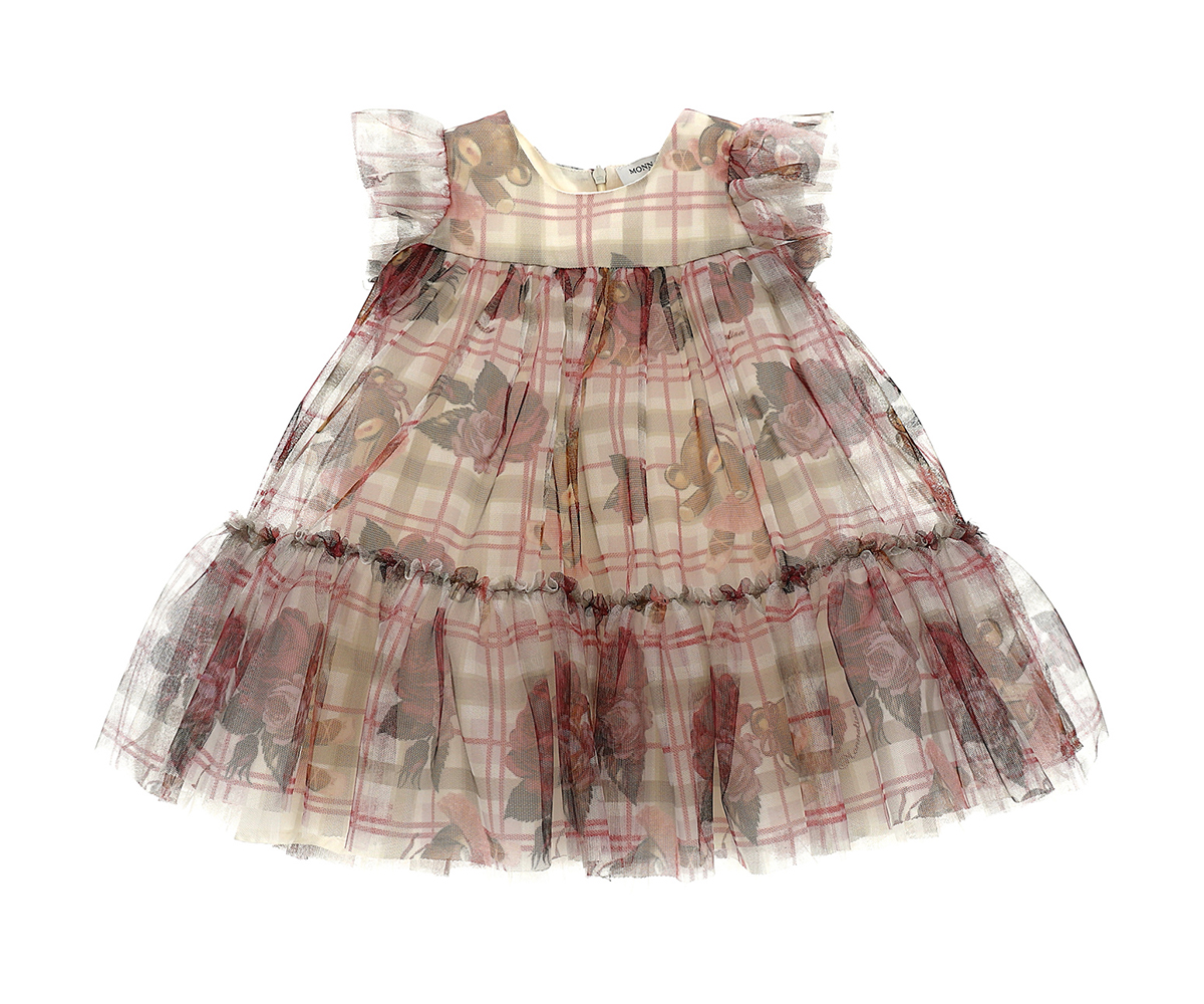 Рокля тюл без ръкав с принт каре и рози Monnalisa, 12 м.