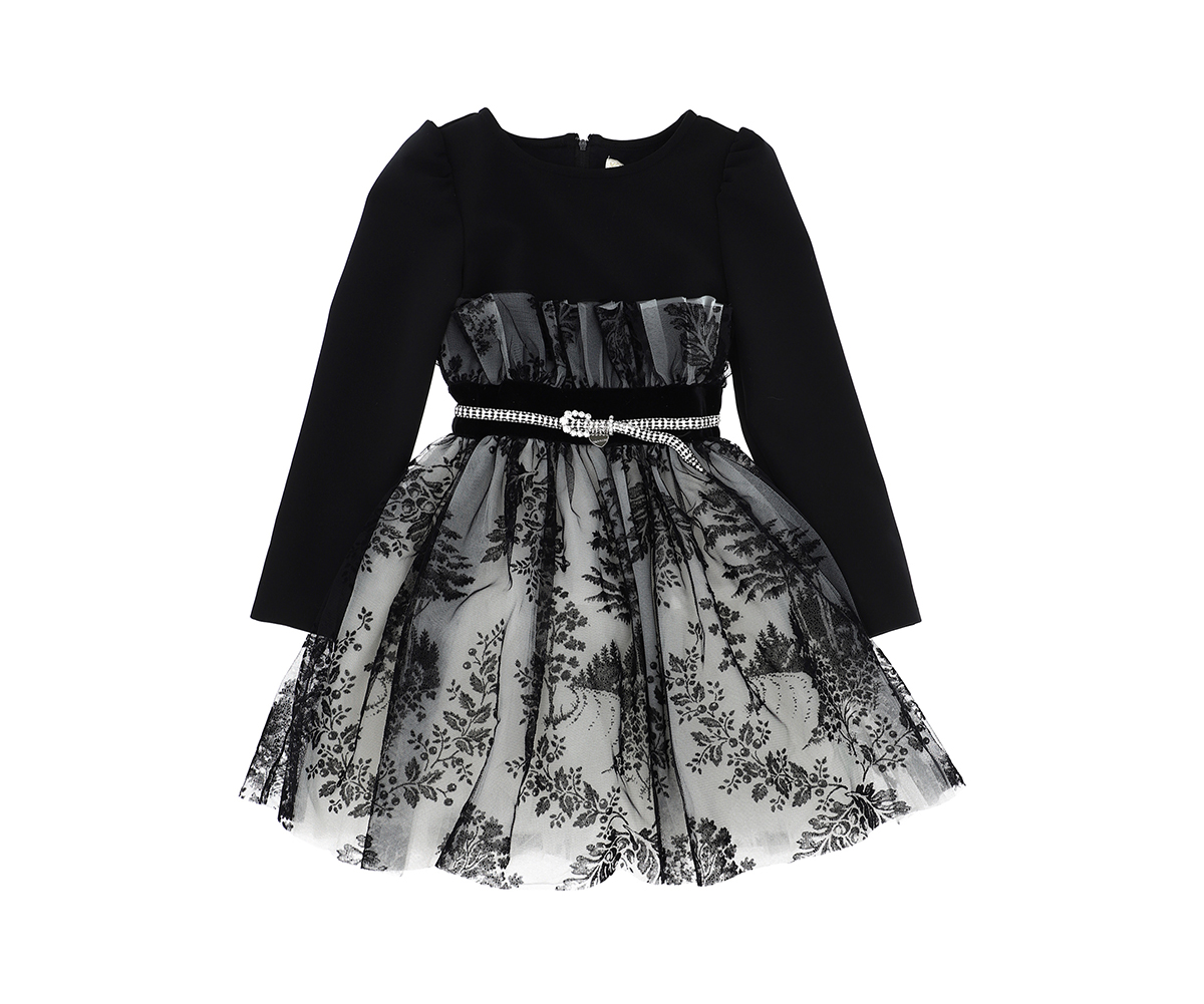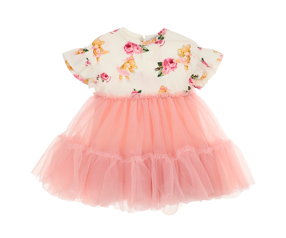 Рокля с къс ръкав с мечета и пола от тюл Monnalisa, 6 м.