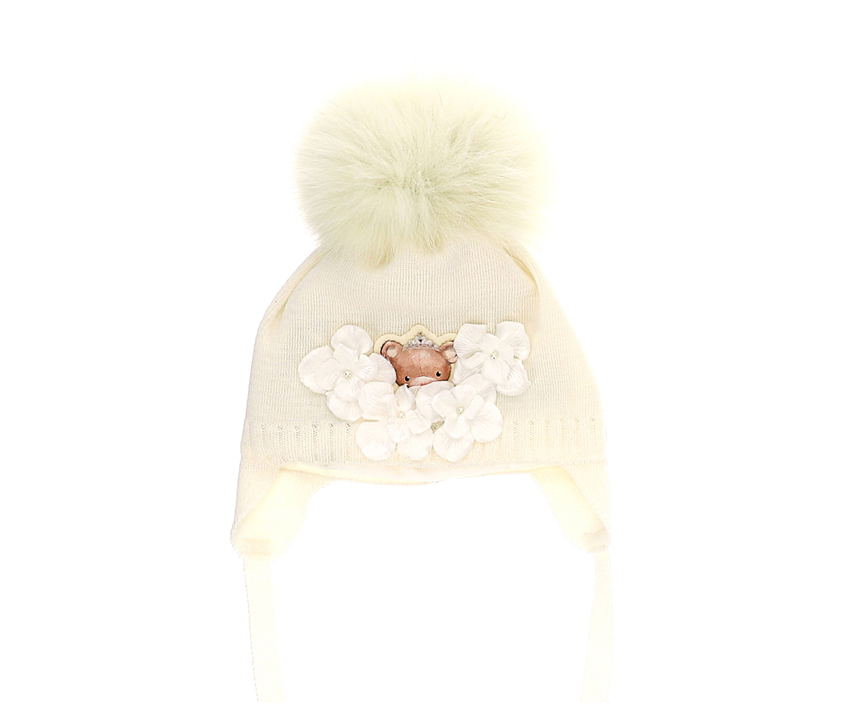 Шапка с помпон и цветя Monnalisa, момиче, XXS