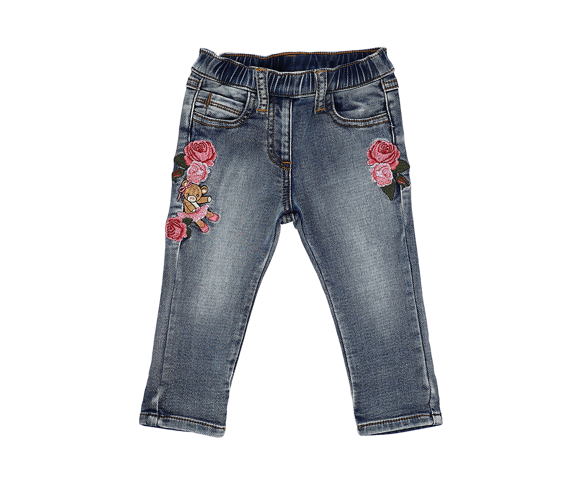 Дънки с бродирани рози и мече Monnalisa, момиче, 12 м.