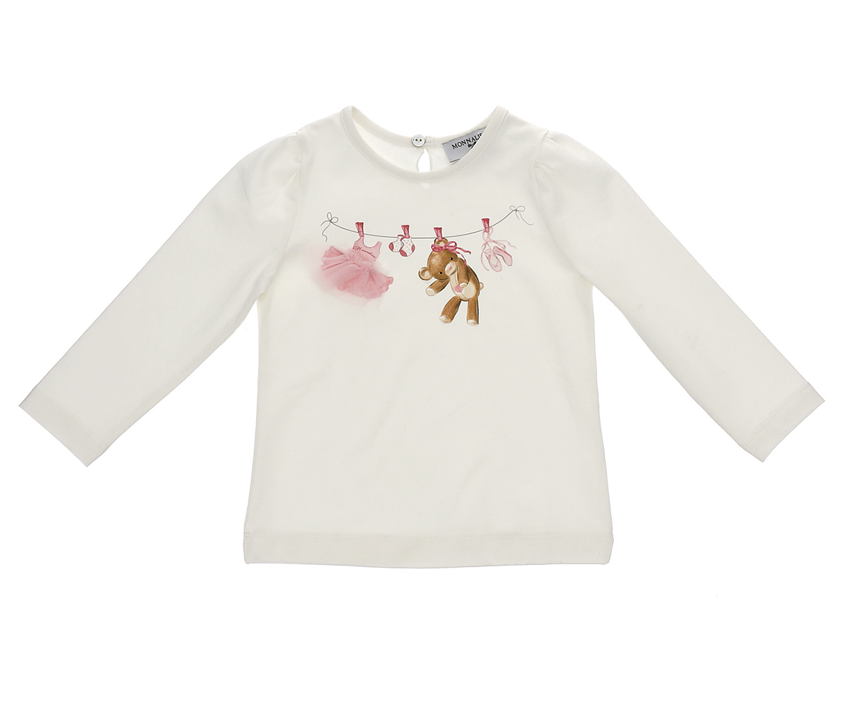 Блуза с дълъг ръкав с принт мече балерина Monnalisa, момиче, 9 м.