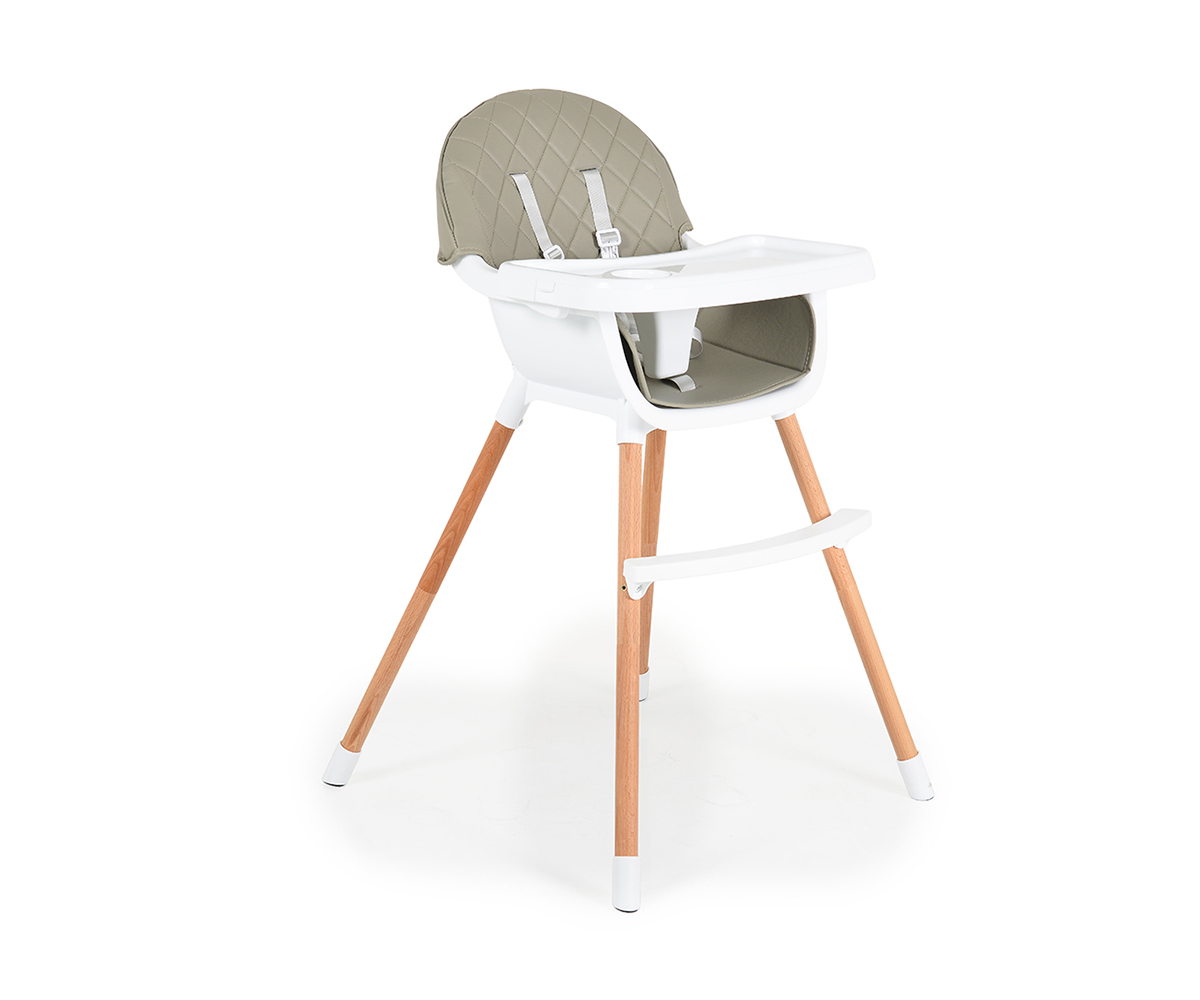 Cangaroo - Детско столче за хранене с дървени крака Gelato 2-в-1, сиво