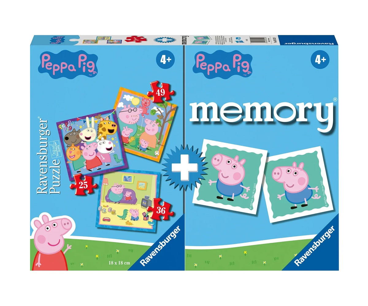 Пъзел Ravensburger 3-в-1 с 25/36/49 ел. + мемори карти - Пепа Пиг