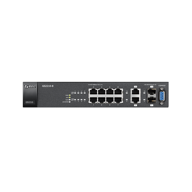 СУИЧ ZYXEL GS2210-8HP, 10 ПОРТОВ УПРАВЛЯЕМ L2, POE, GIGABIT, ЗА МОНТАЖ В ШКАФ