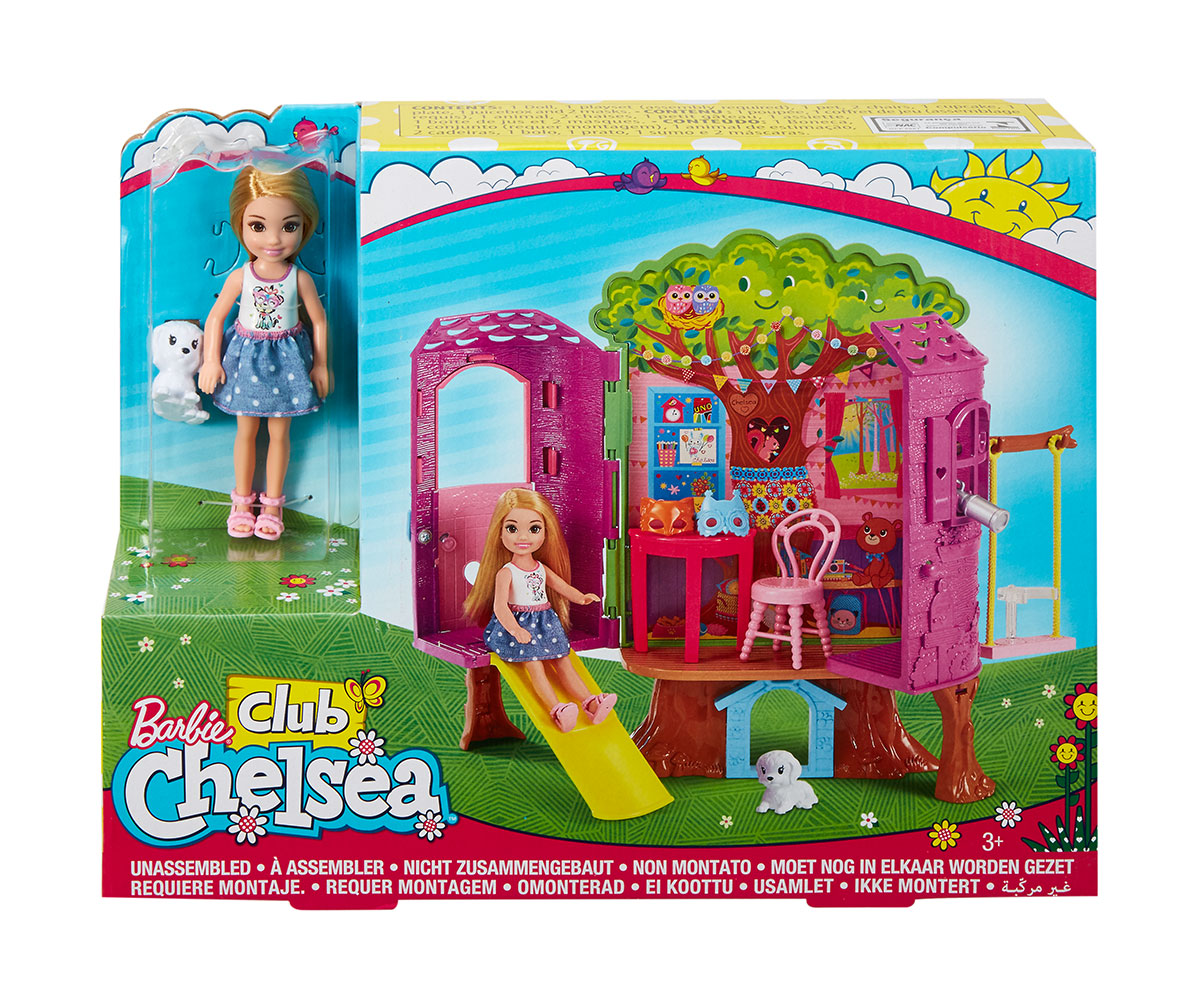 Децата могат да играят от всички ъгли: къщичката се отваря и открива игрални полета; входната врата се отваря и затваря; розова стълба може да се премести от входната врата навътре;отзад се крие кучешка къща, а люлка има клип за задържане на куклата на Челси, докато тя се люлее!