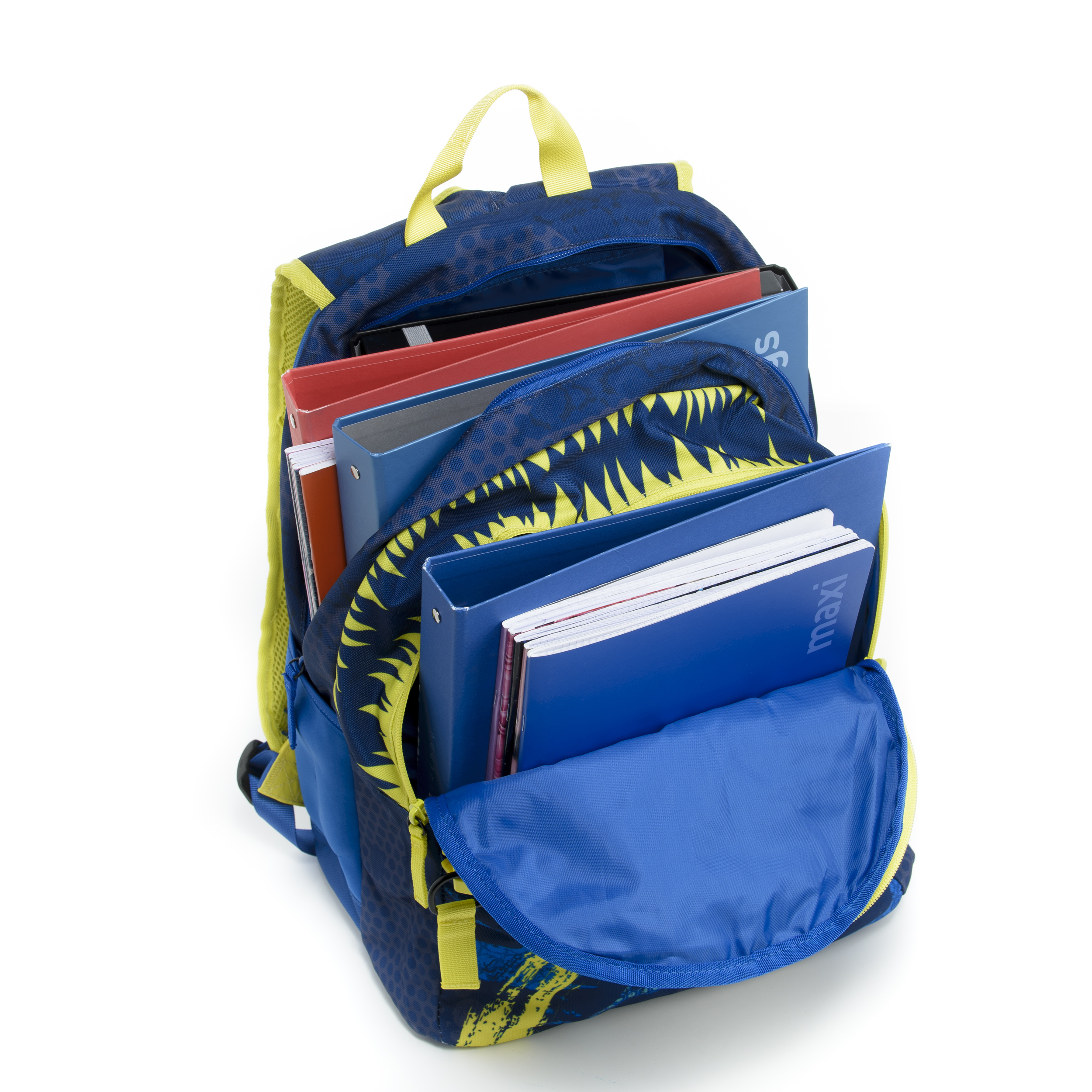 Характеристики: Тип: Plus Серия: Shark Отделения: две отделения (11 см + 9 см) Джобове: два странични джоба от неопрен Ултра лека раница Изработена от водоустойчив материал. Гърбът и основата са подплатени с EVA, за да поддържат цялата тежест и да успокоят ударите, дори когато детето бяга. Раменните презрамки са широки и меки в гъвкав пенопласт, а формата се адаптира към ширината на раменете Раницата се предлага с ПОДАРЪК 2 бр. неонови глитери за украсяване на раницата. Размери: 41 х 31 х 20 см Тегло: 0.650 кг Капацитет до 25 л