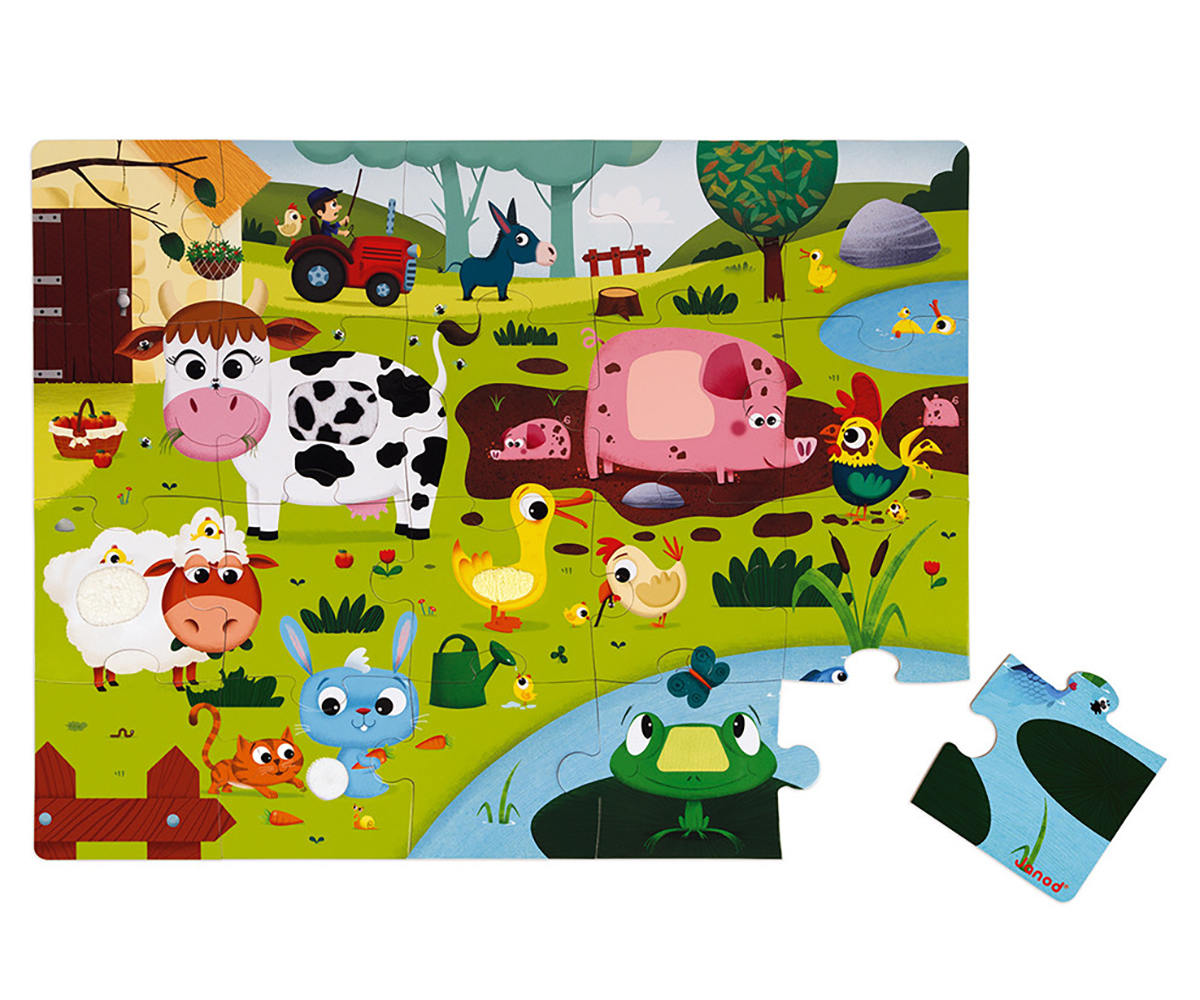 Пъзел осезание Janod 20 ел. - Животни от фермата