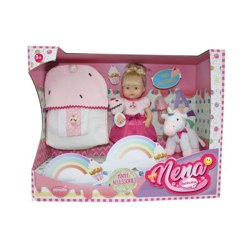 BAMBOLINA Кукла NENA 36см. пишкаща с раница и еднорог