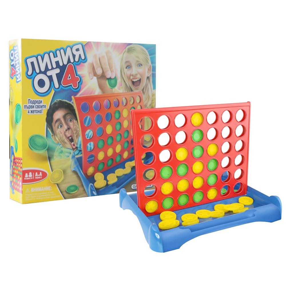 Подреди първи линия от 4 жетона от твоя цвят диагонално, хоризонтално или вертикално!