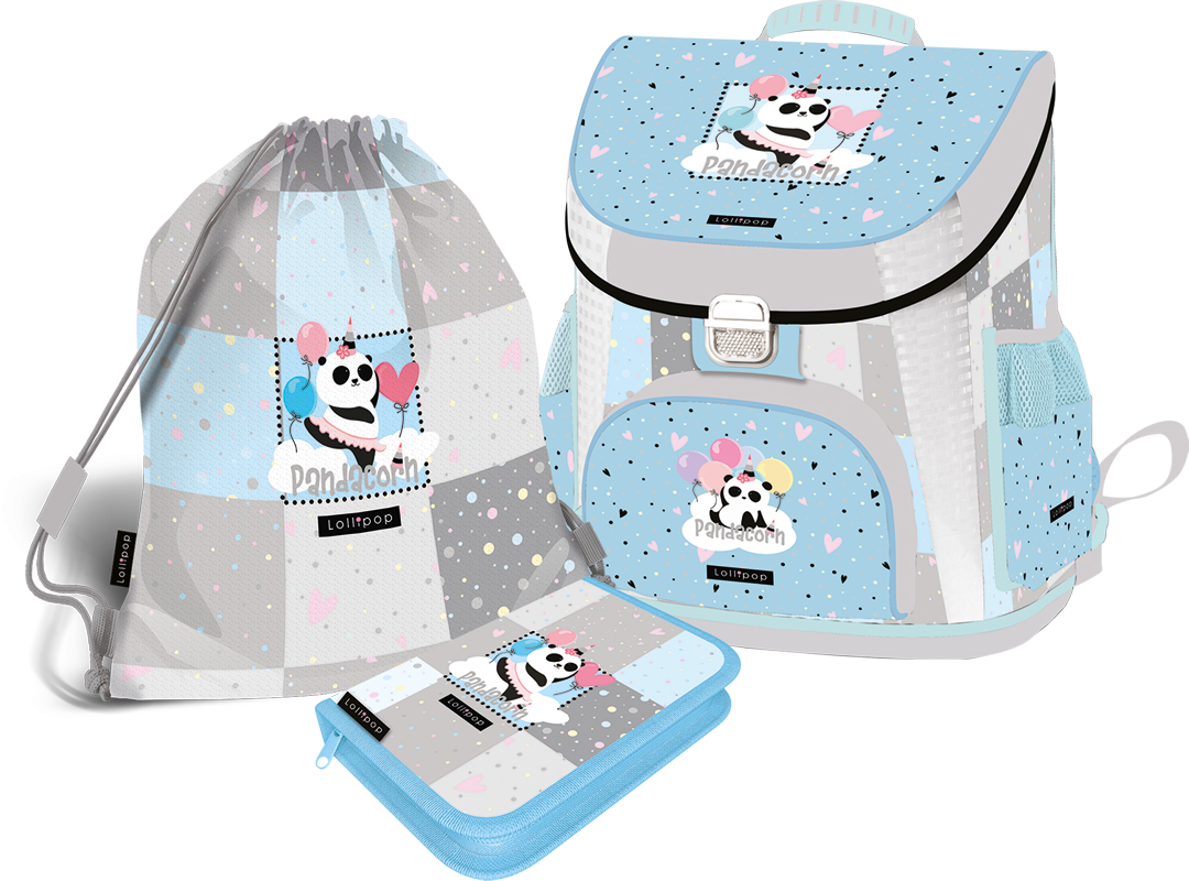 LizzyCard 2021 LOLLIPOP PANDACORN Комплект 3 в 1 ергономична раница, несесер с 1 цип и спортна торба + ПОДАРЪК торба