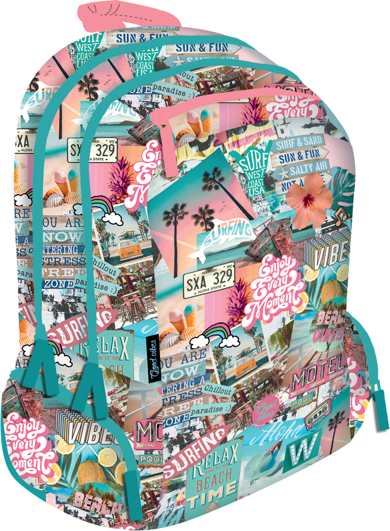 LizzyCard 2021 GOOD VIBES BEACH Ученическа раница с две отделения TEEN+ + ПОДАРЪК торба