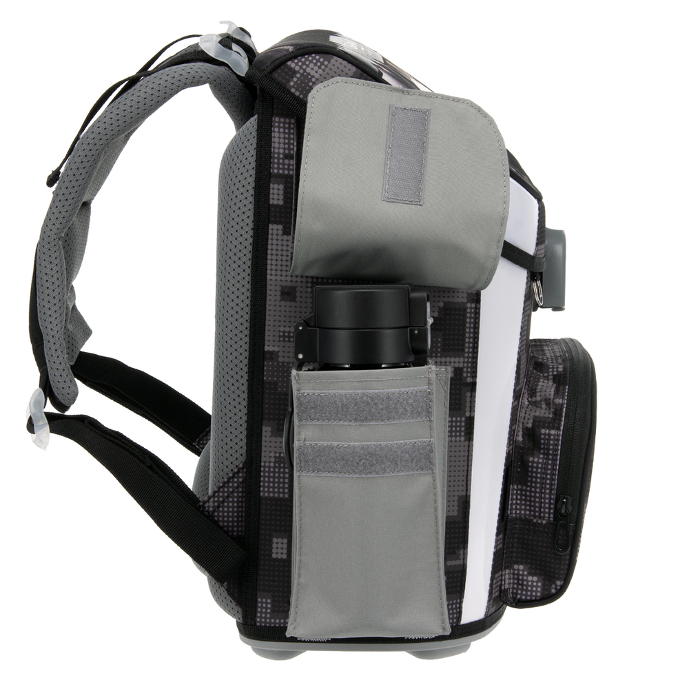 Джобове: Малък джоб с цип във второто отделение; преден джоб под капака; два странични джоба, които се затварят с велкро и при нужда се разширяват лесно в долната част, подходящи за носене на малка бутилка