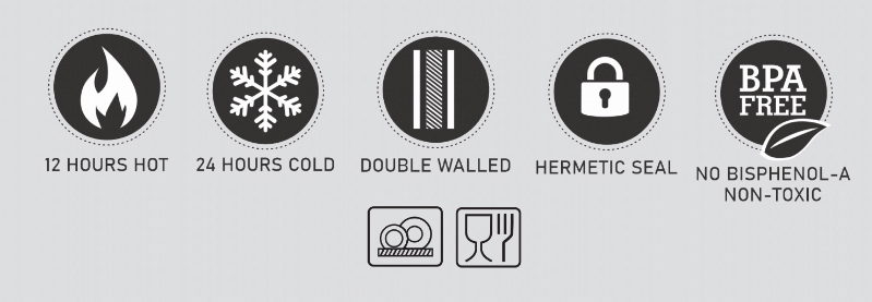 • Бутилката е изработена от двустенна неръдждаема стомана и запазва напитките топли до 12 часа и студени до 24 часа.