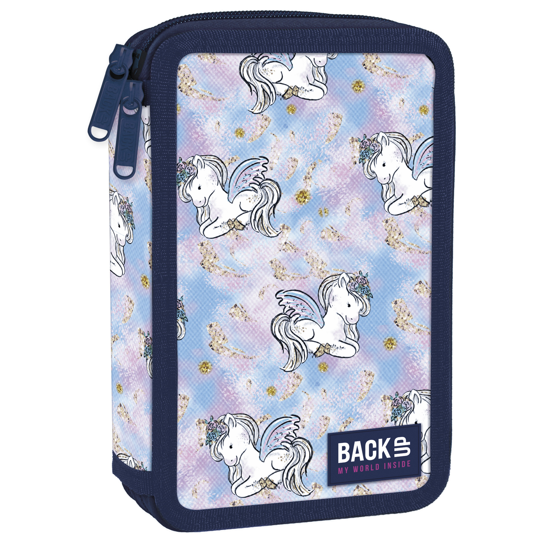 BackUp 2021 Sweet Unicorn Твърд ученически несесер с 2 ципа, зареден с пособия DW 25