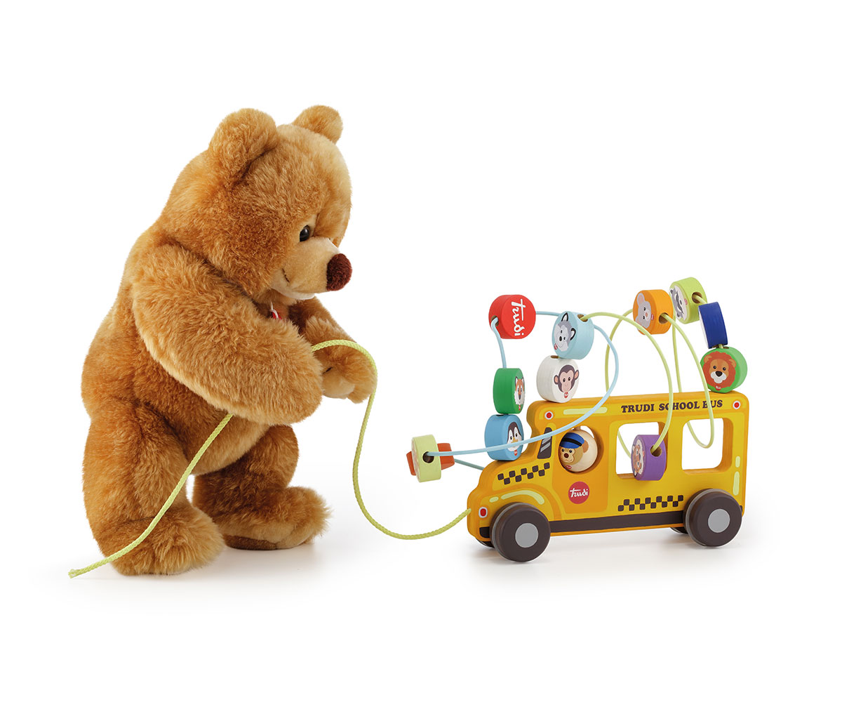 Дървена играчка Sevi - Играчка за дърпане, училищен автобус