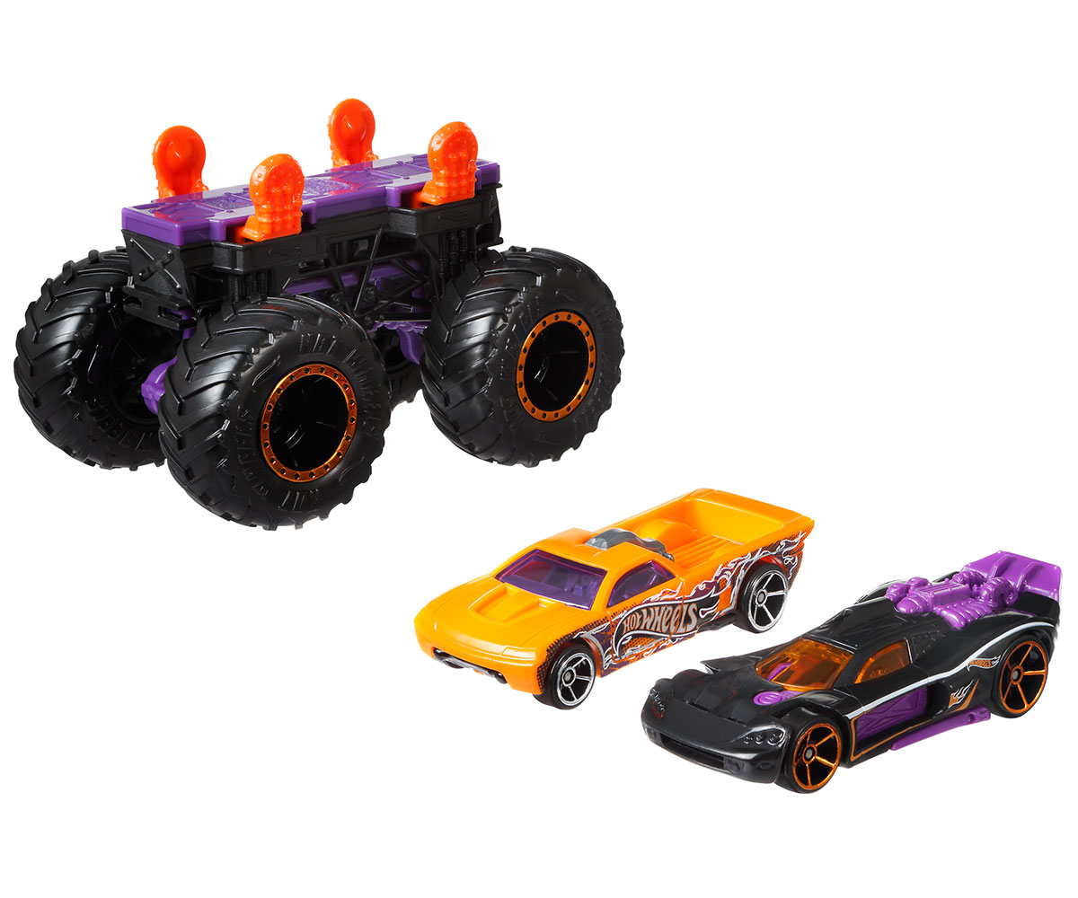 Hot Wheels - Комплект голямо бъги Monster с 2 колички Хот Уилс, лилаво с оранжева и лилава количка