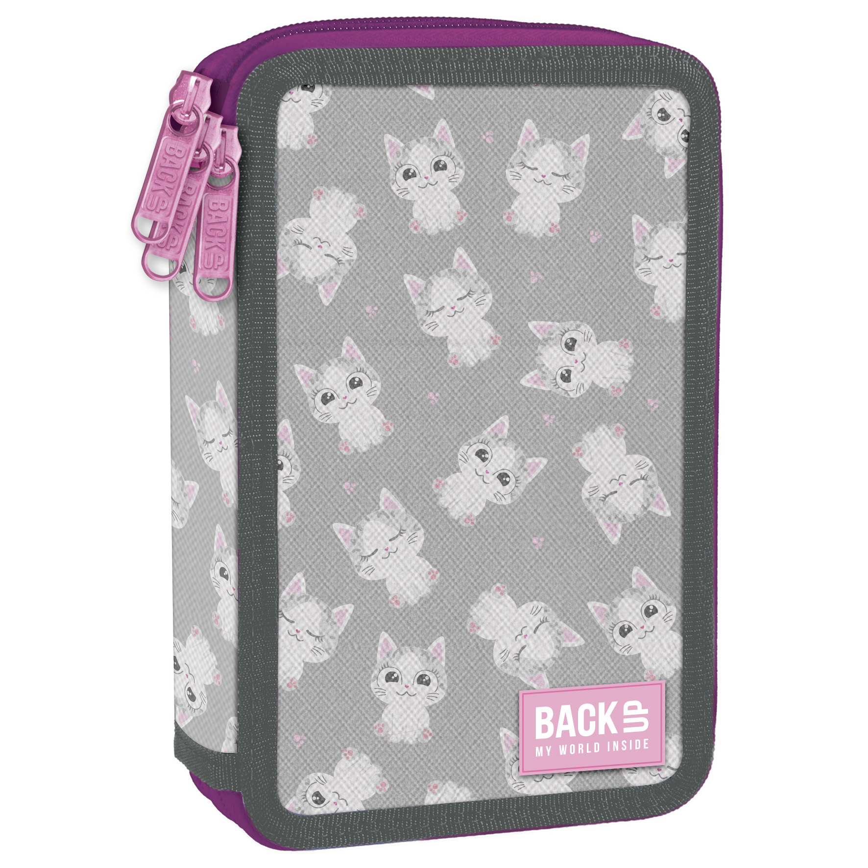 BackUp 2022 Kitty Твърд ученически несесер с 3 ципа, зареден с пособия EW 77