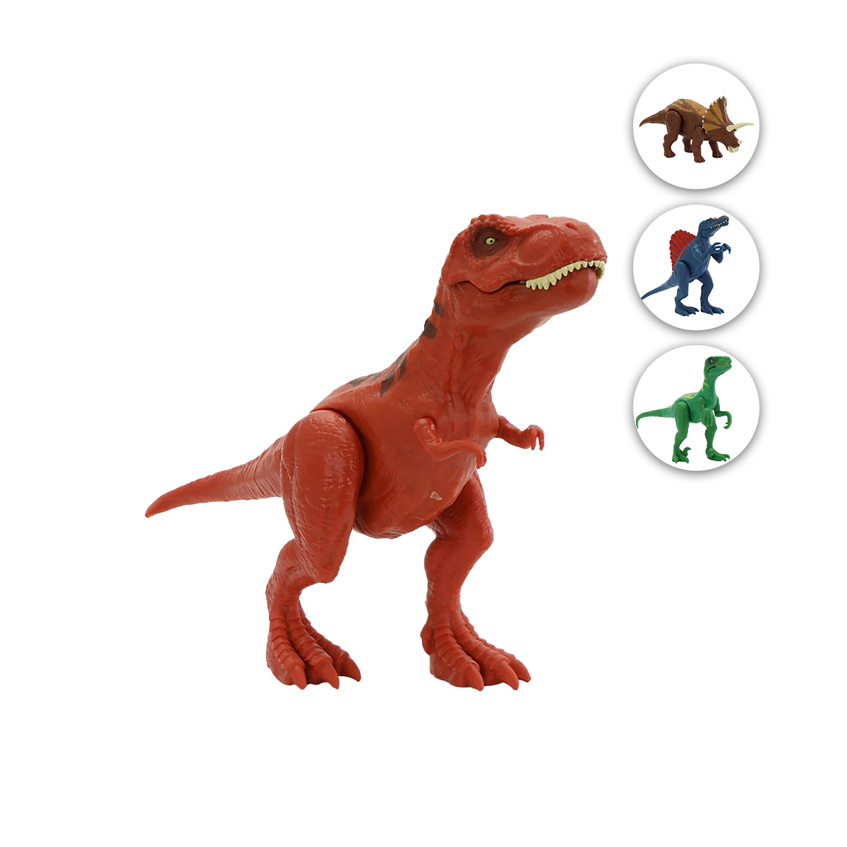 Този Дино реве и ходи като истински динозавър. Може да движи устата си и има мека гумена опашка. Играчката е подходяща за деца от 3 години. Продуктът изисква 3 × LR44 батерии (включени).