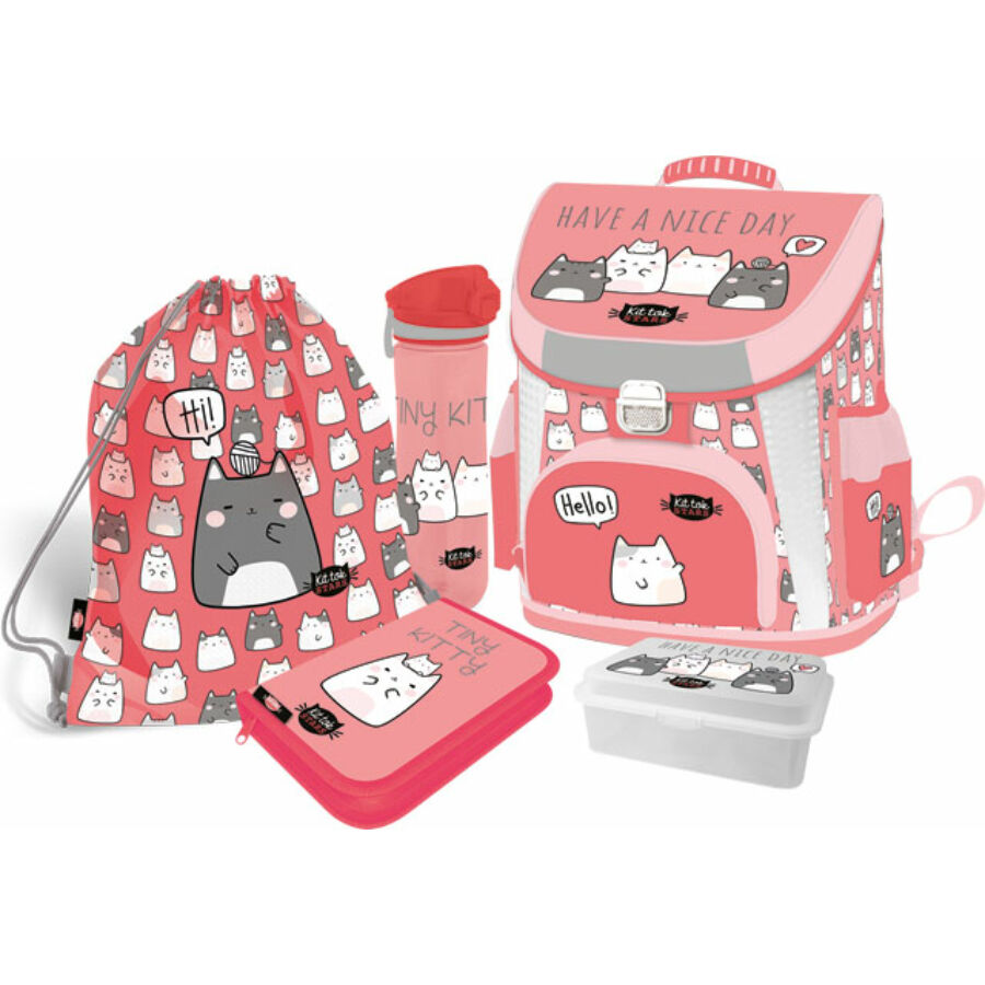 LizzyCard 2023 KITTOK CATTO Комплект 5 в 1 - ергономична раница, несесер с 1 цип, кутия за храна, спортна торба, бутилка + ПОДАРЪК торба