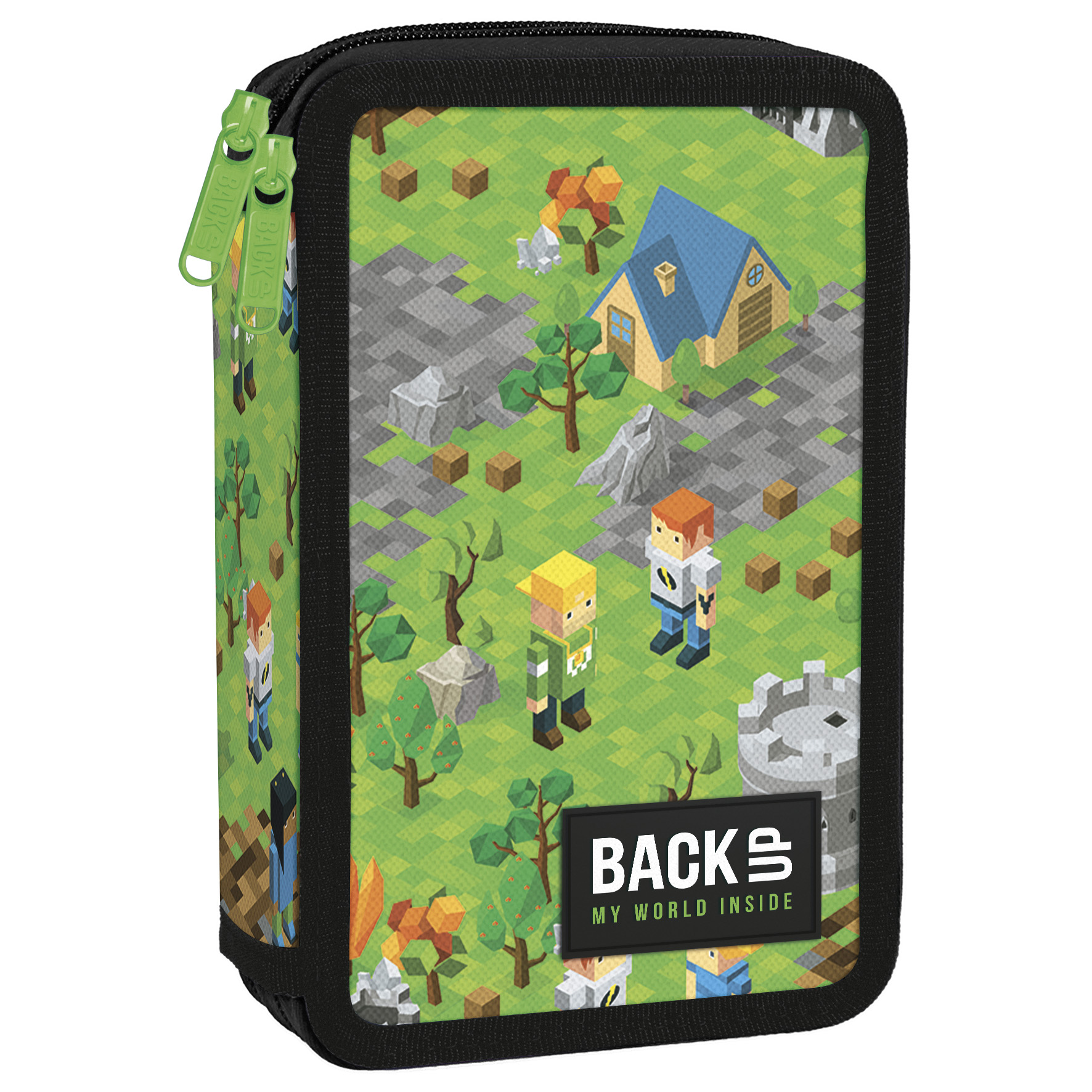 BackUp 2023 Pixel Fort Твърд ученически несесер с 2 ципа, зареден с пособия DW 61