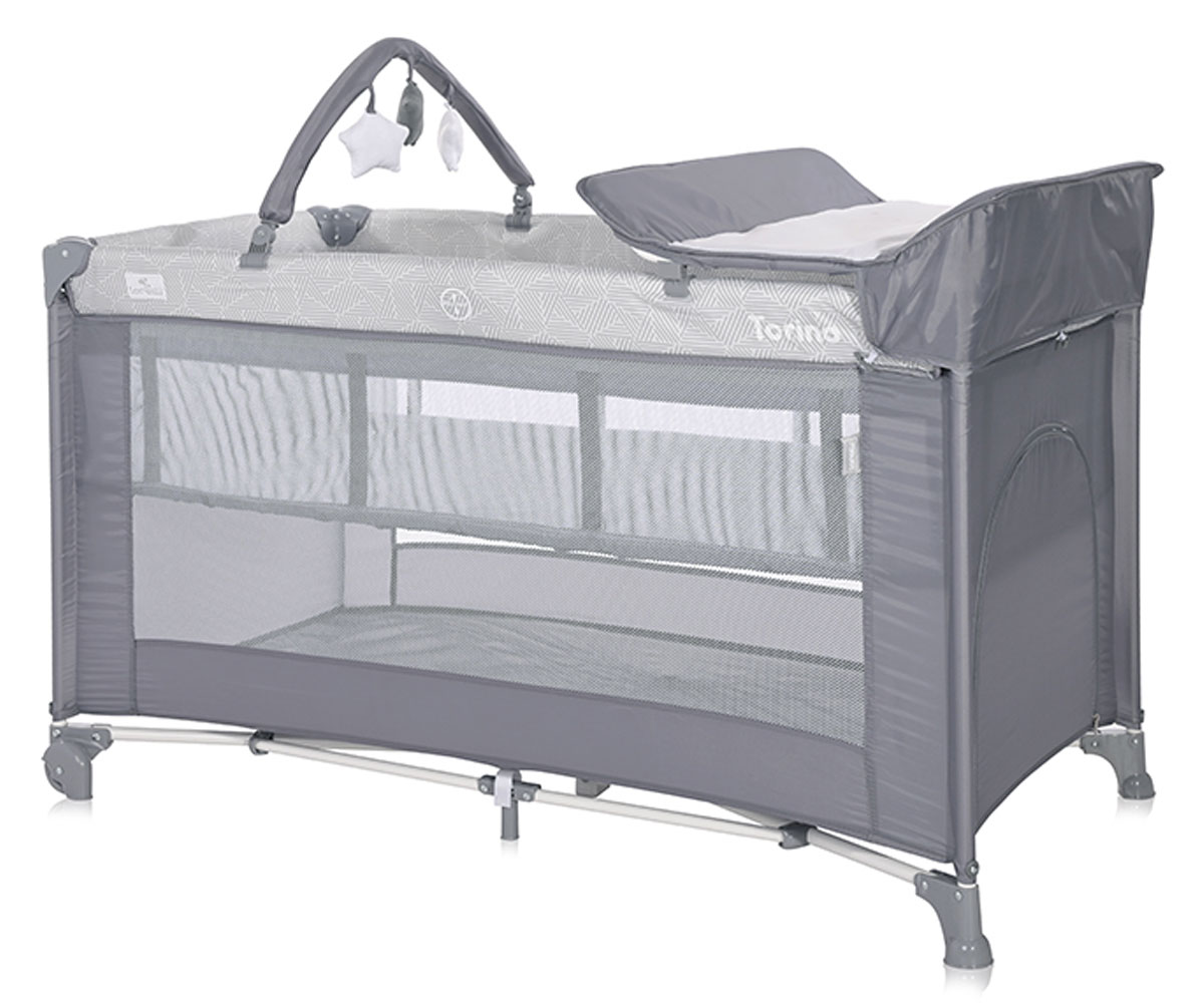 Преносима бебешка кошара на 2 нива за спане и игра Lorelli Torino Plus, Grey Striped Elements - Ref. 07577136