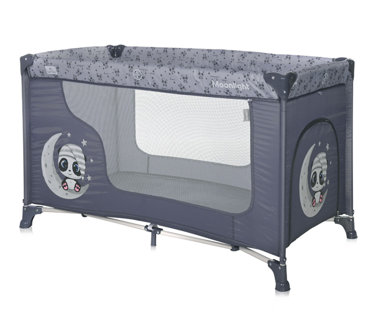 Преносима бебешка кошара на 1 ниво за спане и игра Lorelli Moonlight, Cool Grey Pandas - Ref. 07577155