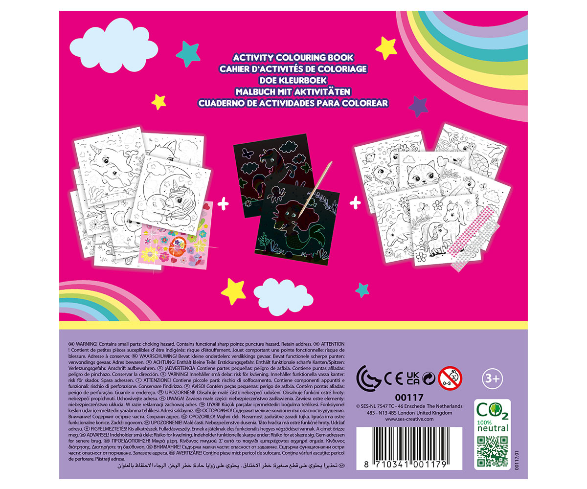 SES - Книжка за оцветяване с брокат 3 в 1 - Ref. 0800117