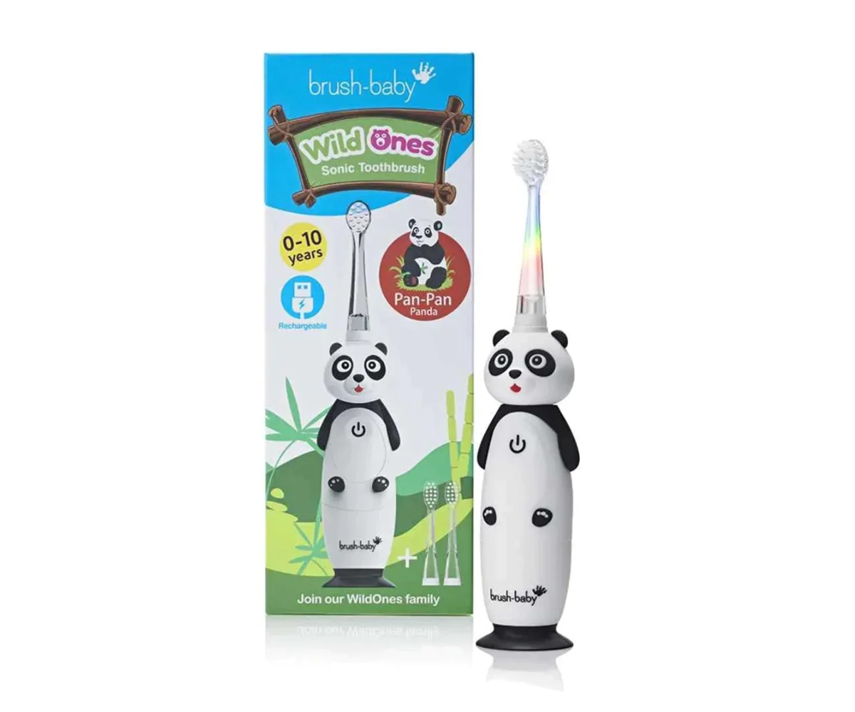 BrushBaby Wild Ones - Зареждаща се детска електрическа четка за зъби 0-10г., Панда