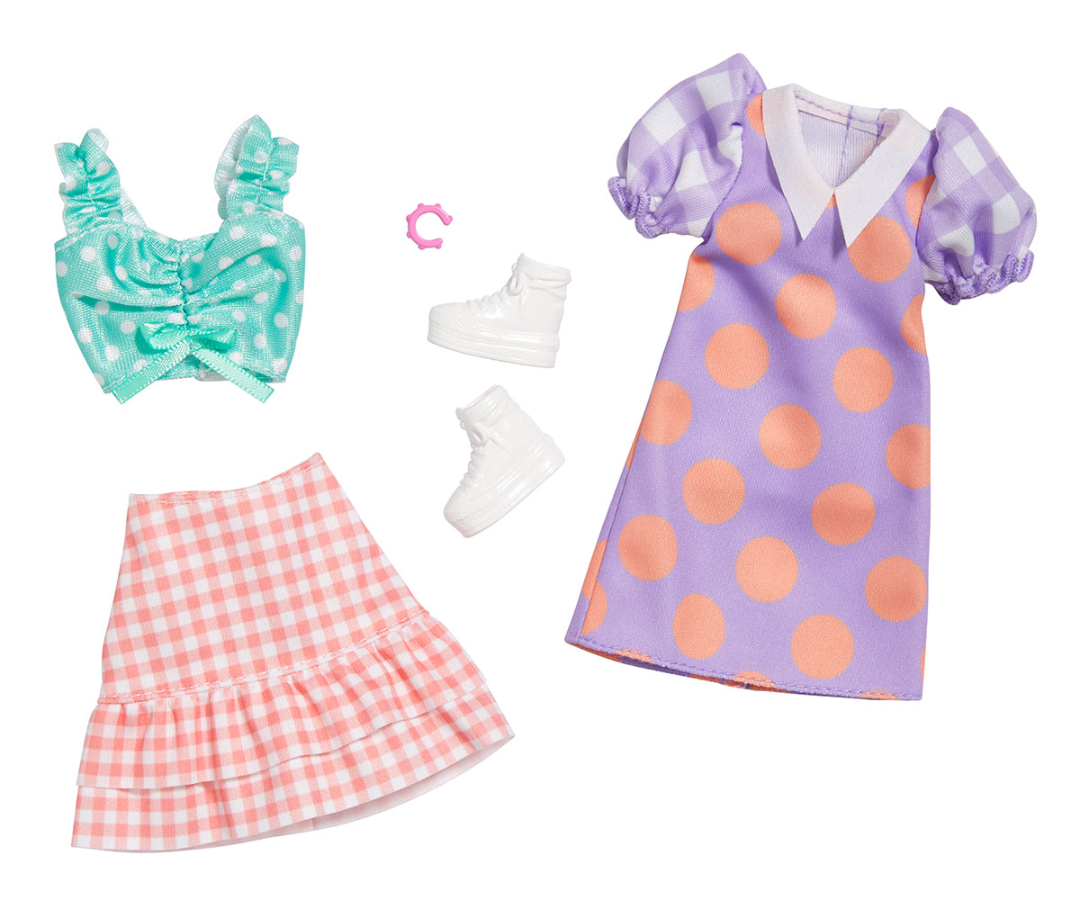 Кукла Barbie - Двоен комплект модни дрехи, лилава рокля на точки - Ref. 1710295v1