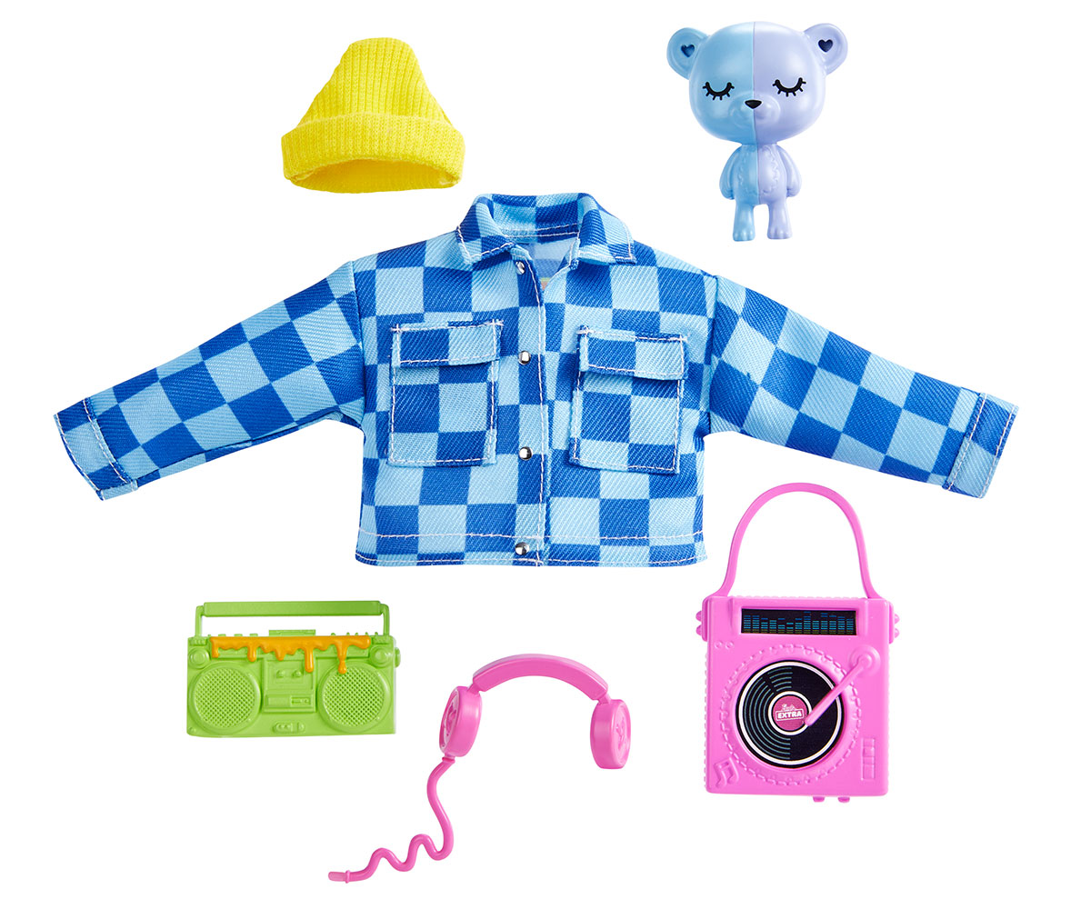 Кукла Barbie - Екстра: Комплект домашни любимци и модни аксесоари, синьо яке и мече - Ref. 1710301v3