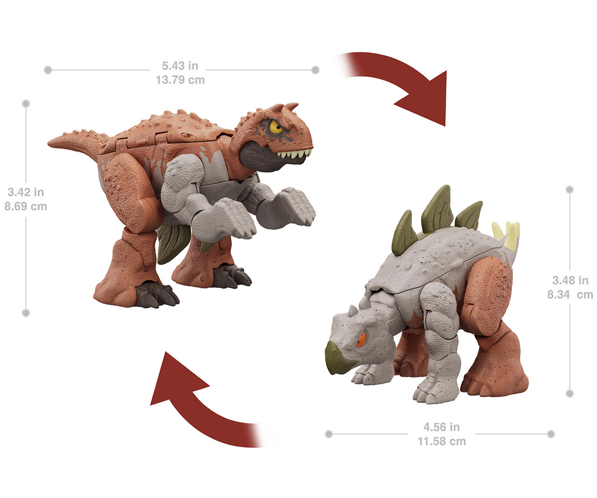 Джурасик свят - Фигурка с трансформация от хищник във вегетарианец, Carnotaurus&Stegosaurus