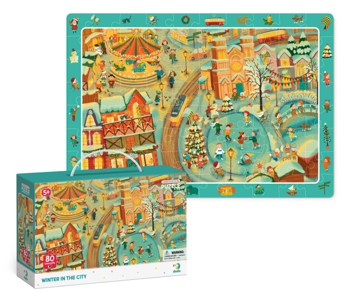 Комплект коледен пъзел 80 части Dodo, зима в града, 45 х 31 см - Ref. 221535