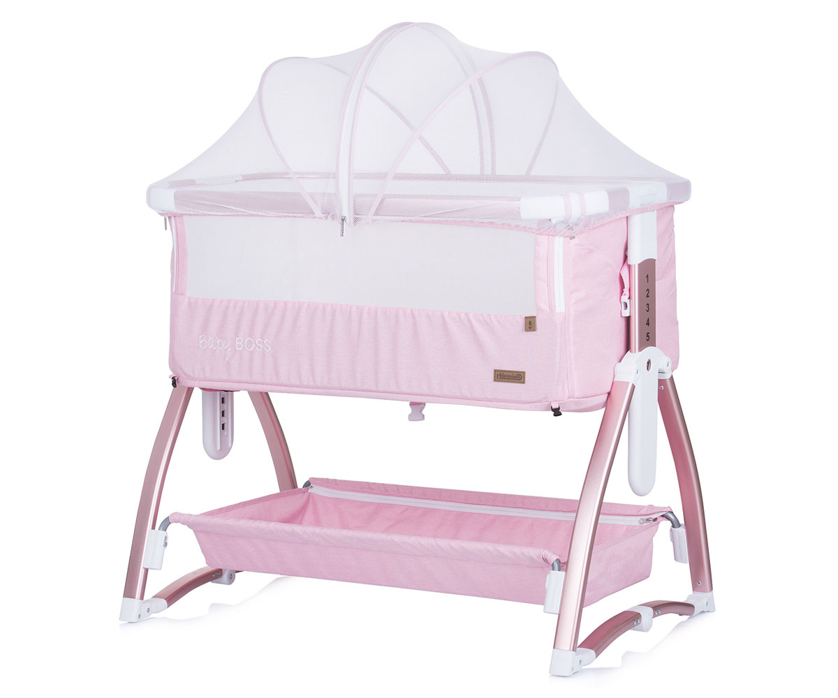 Бебешка кошара за спане с подвижна страна Chipolino Baby Boss, пудра