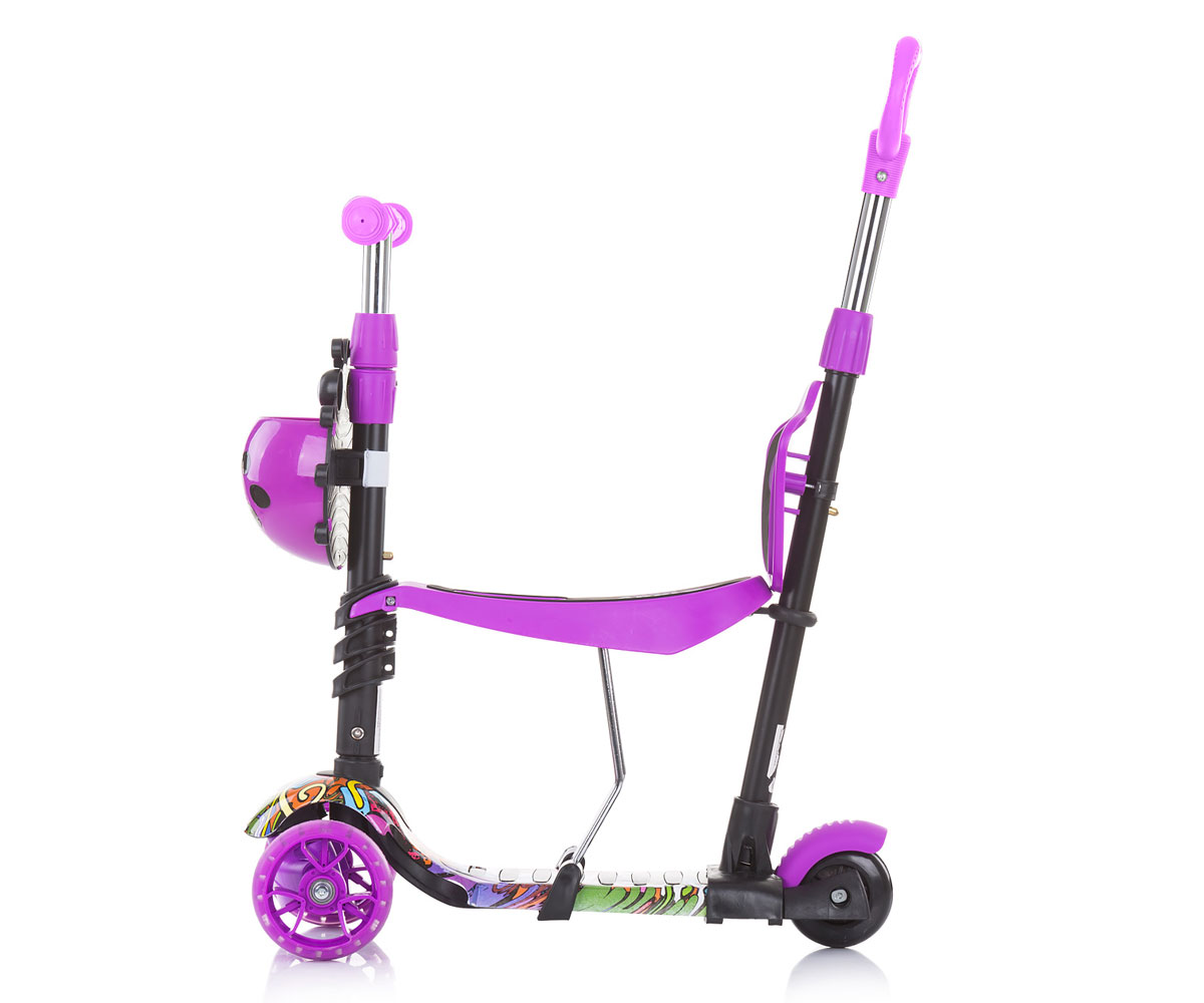 Детски скутер 3в1 Chipolino Киди Ево с дръжка, лила графити
