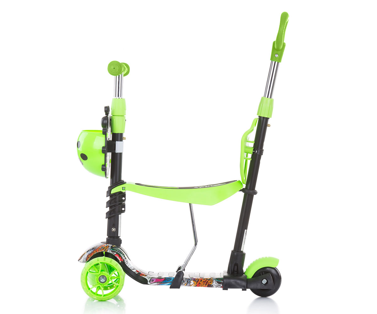 Детски скутер 3в1 Chipolino Киди Ево с дръжка, зелени графити - Ref. 3506487
