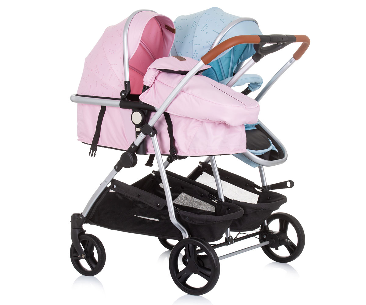 Комбинирана количка за близнаци до 22 кг Chipolino Дуо Смарт, роза/скай - Ref. 3506713