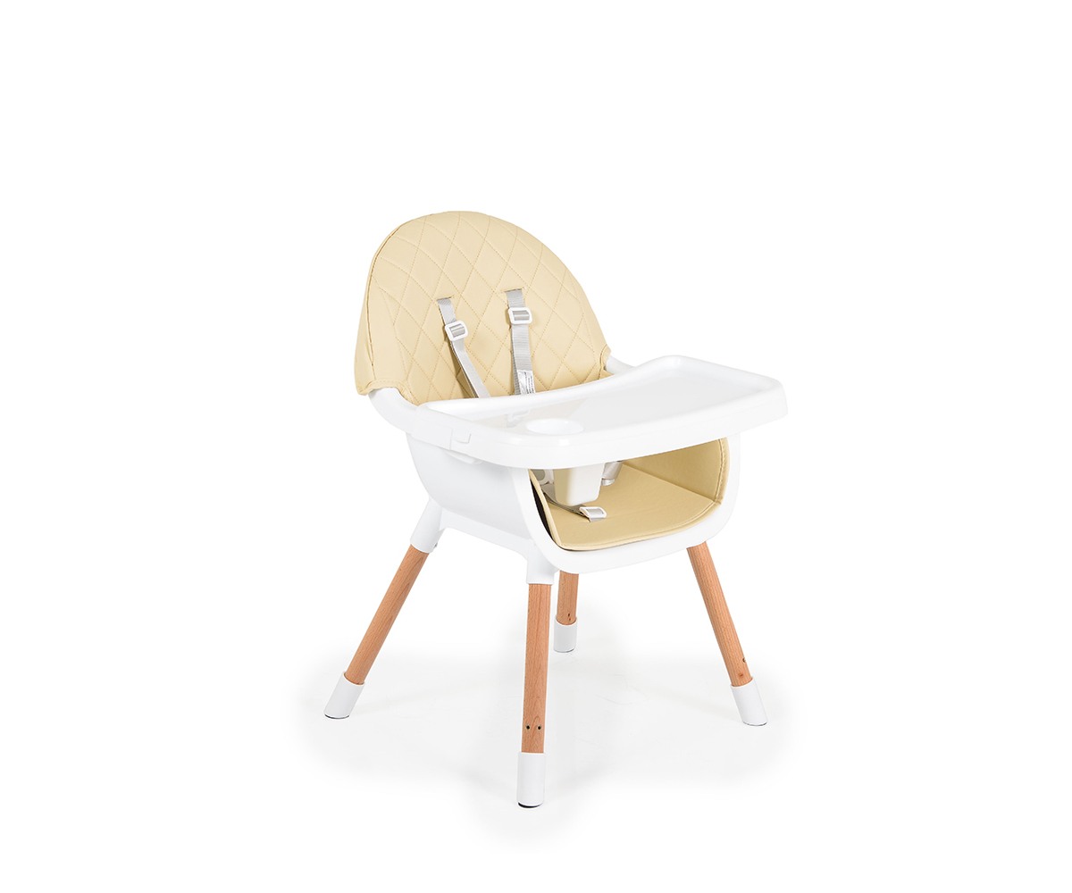Cangaroo - Детско столче за хранене с дървени крака Gelato 2-в-1, бежово