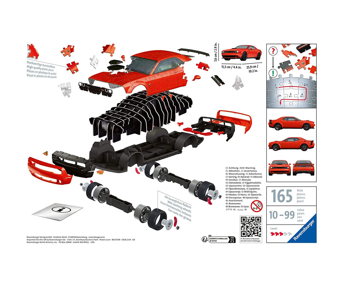 3D Пъзел Ravensburger 108 ел. - Dodge Challenger R/T Scat Pack Widebody - Ref. 7011284
