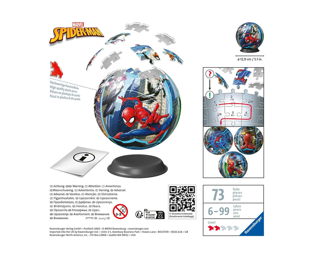 3D Пъзел топка Ravensburger 72 ел. - Спайдърмен - Ref. 7011563