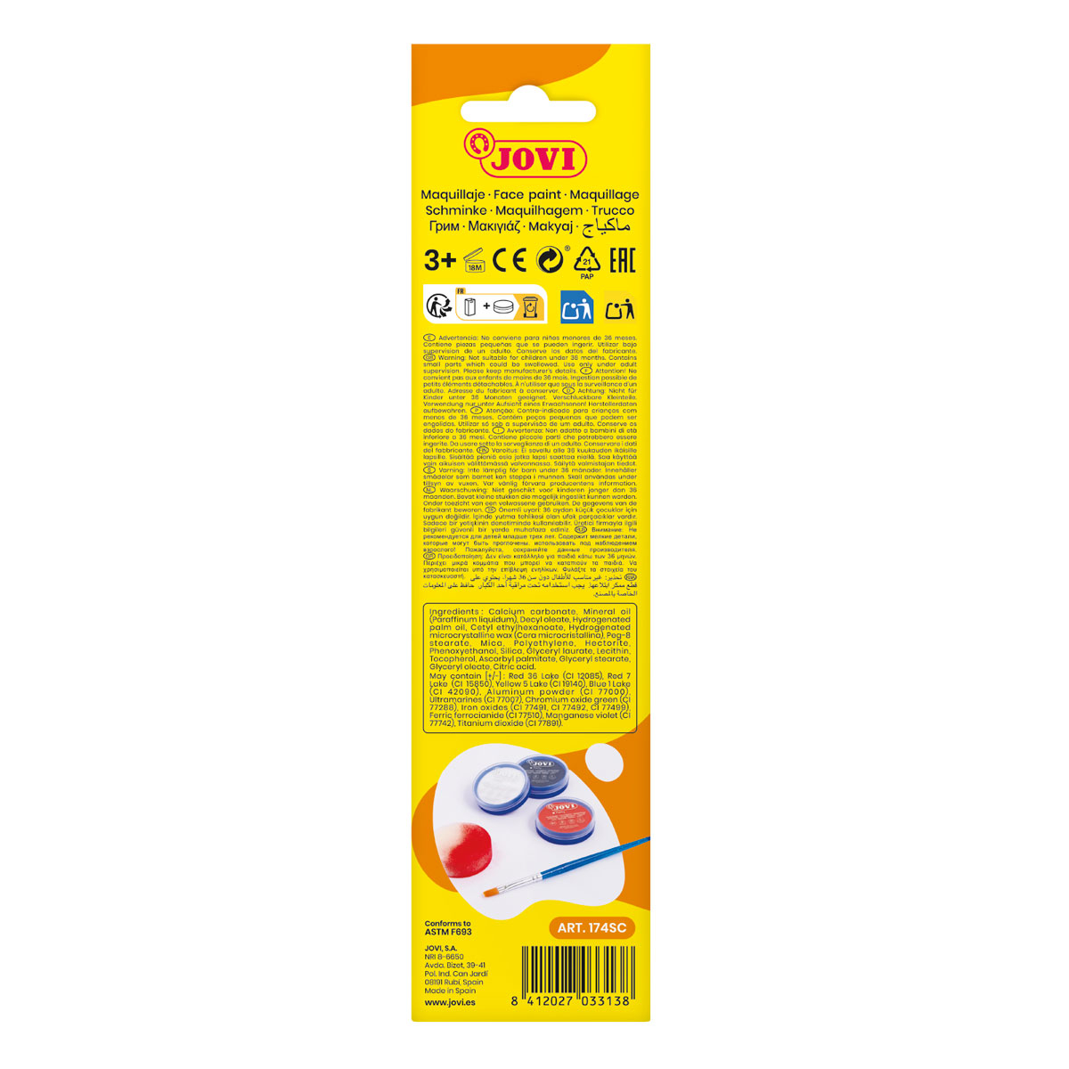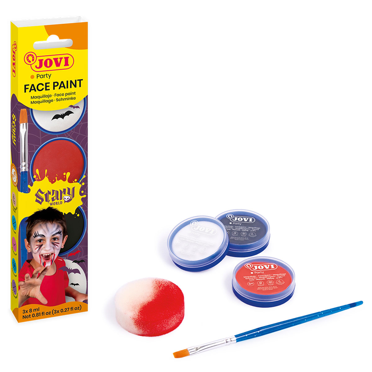 JOVI - Бои за лице 3 цв. х 8 мл. + гъба и четка - Scary