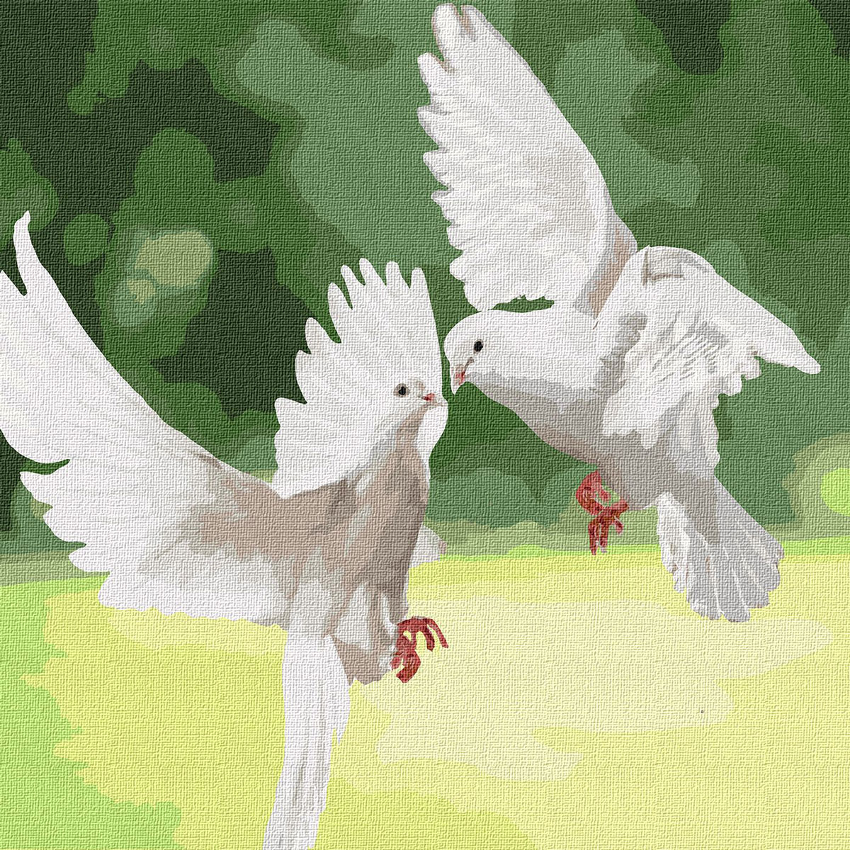 Ideyka - Рисуване по номера с акрилни бои върху платно на подрамка - 40 х 40 - Бели гълъби