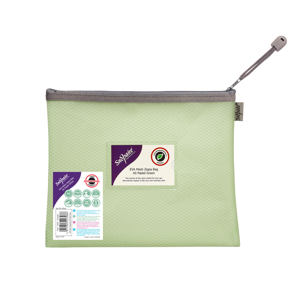 Snopake - Папка с цип А5 EVA Pastel Mesh, зелена