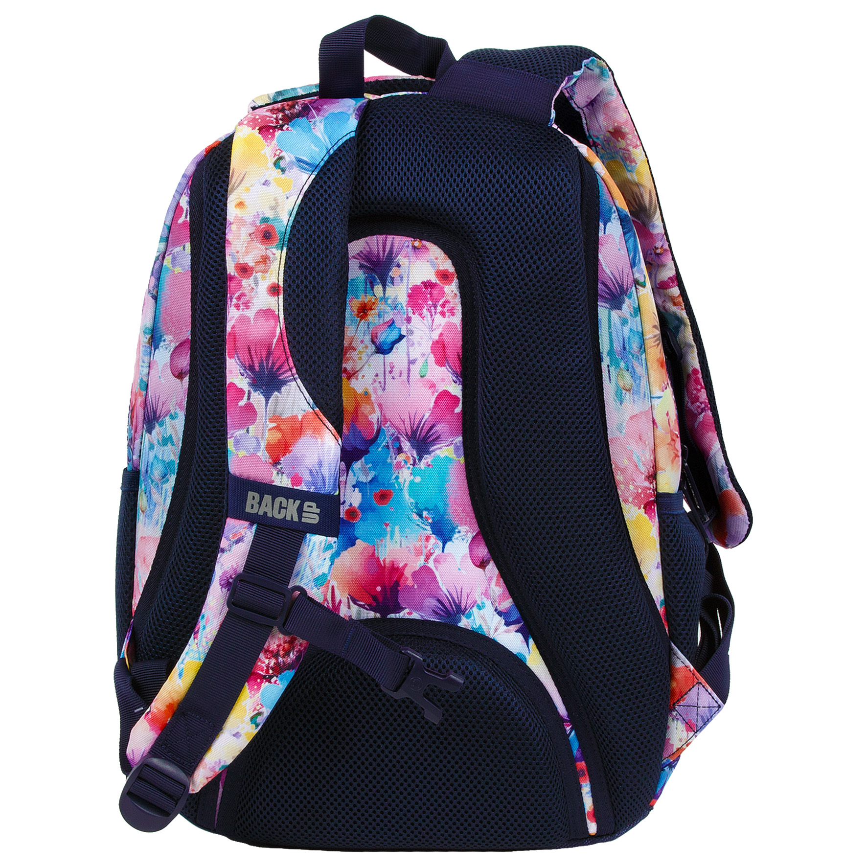 Гърбът на раницата е ергономично оформен и покрит с дишащ материал.