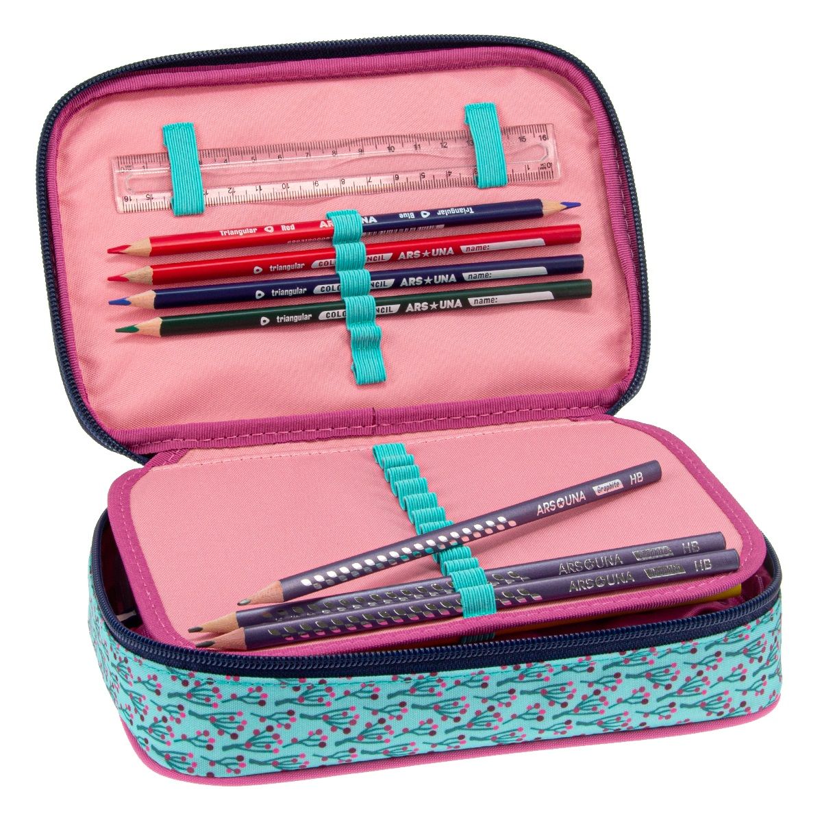 4 широки ластичета за поставяне на линийка, острилка, гума