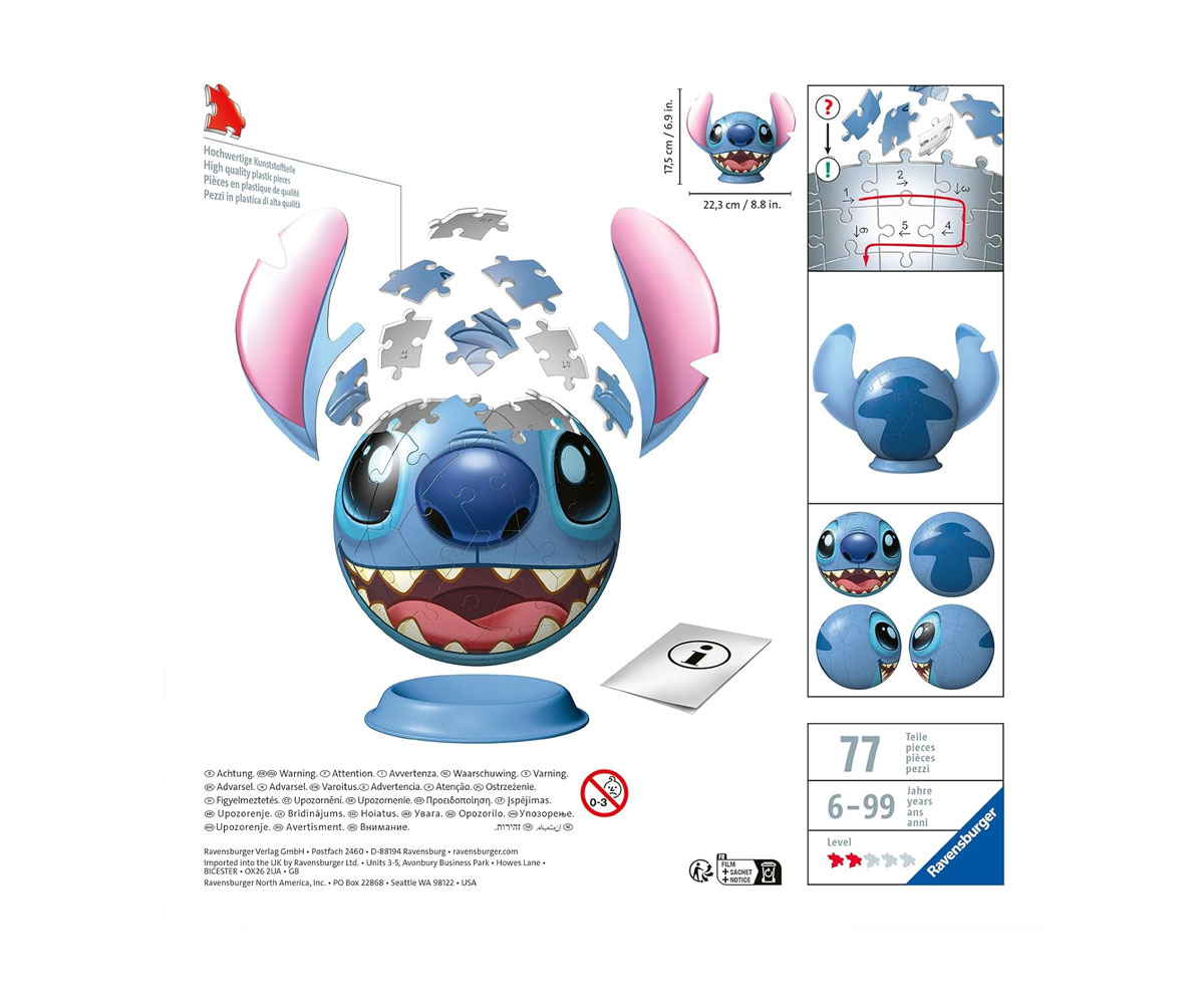 3D Пъзел топка Ravensburger 72 ел. - Дисни: Стич с уши - Ref. 7011574