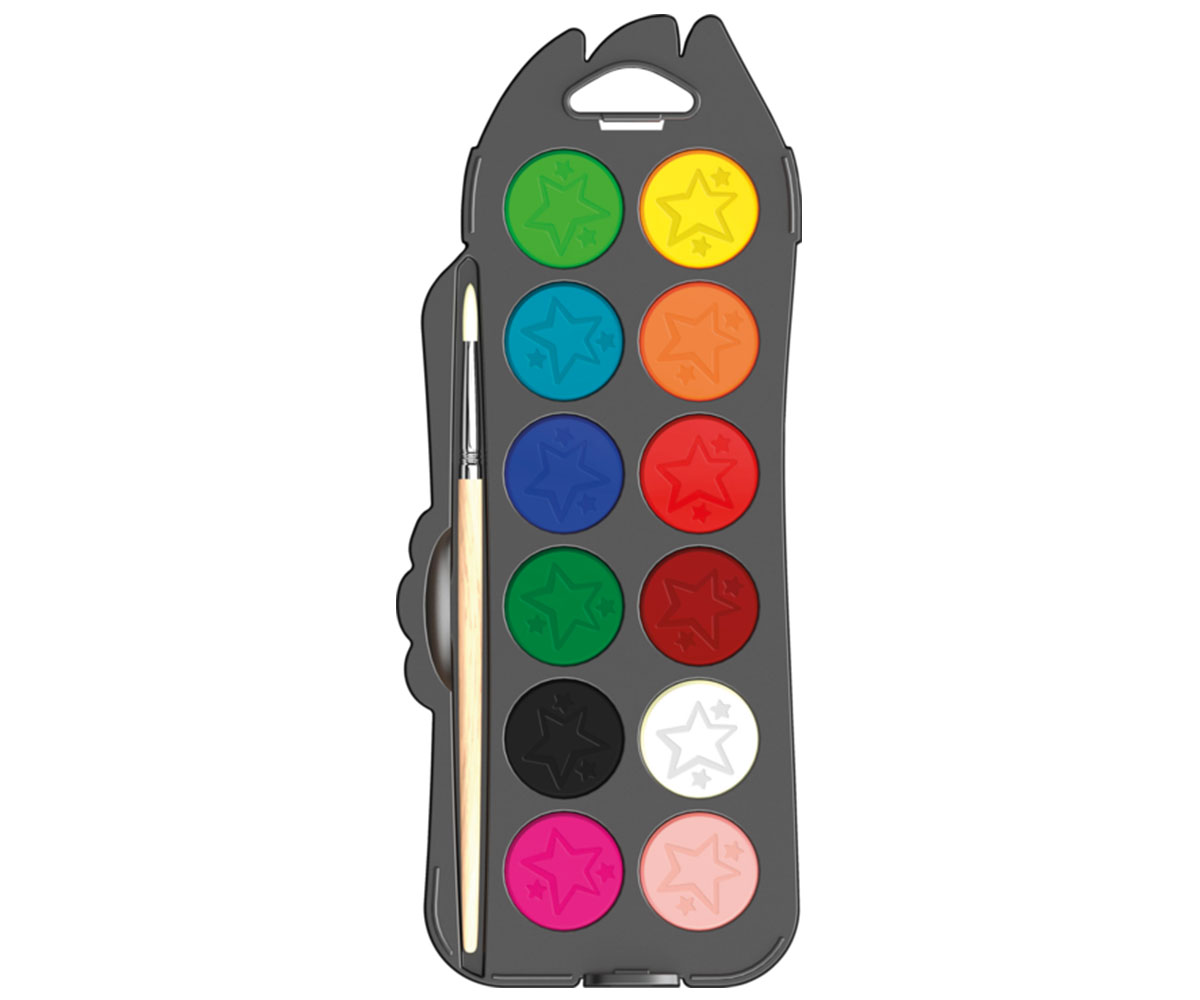 Кутия с водна боя и четка MAPED, 12 цвята